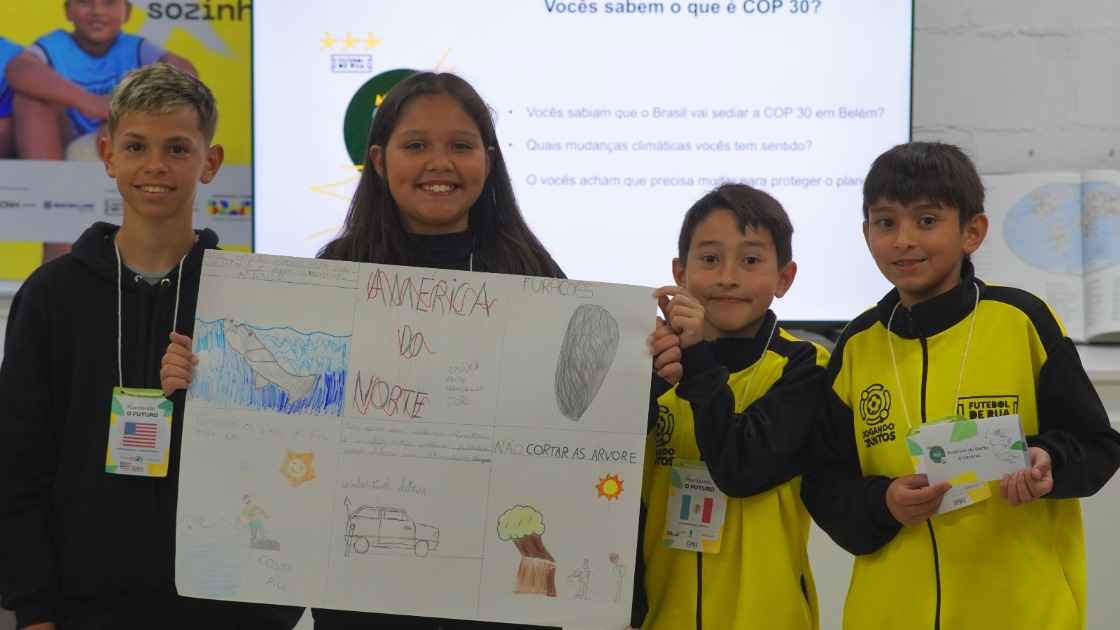 Crianças e adolescentes do Futebol de Rua vivenciam conferência climática inspirada na COP 30